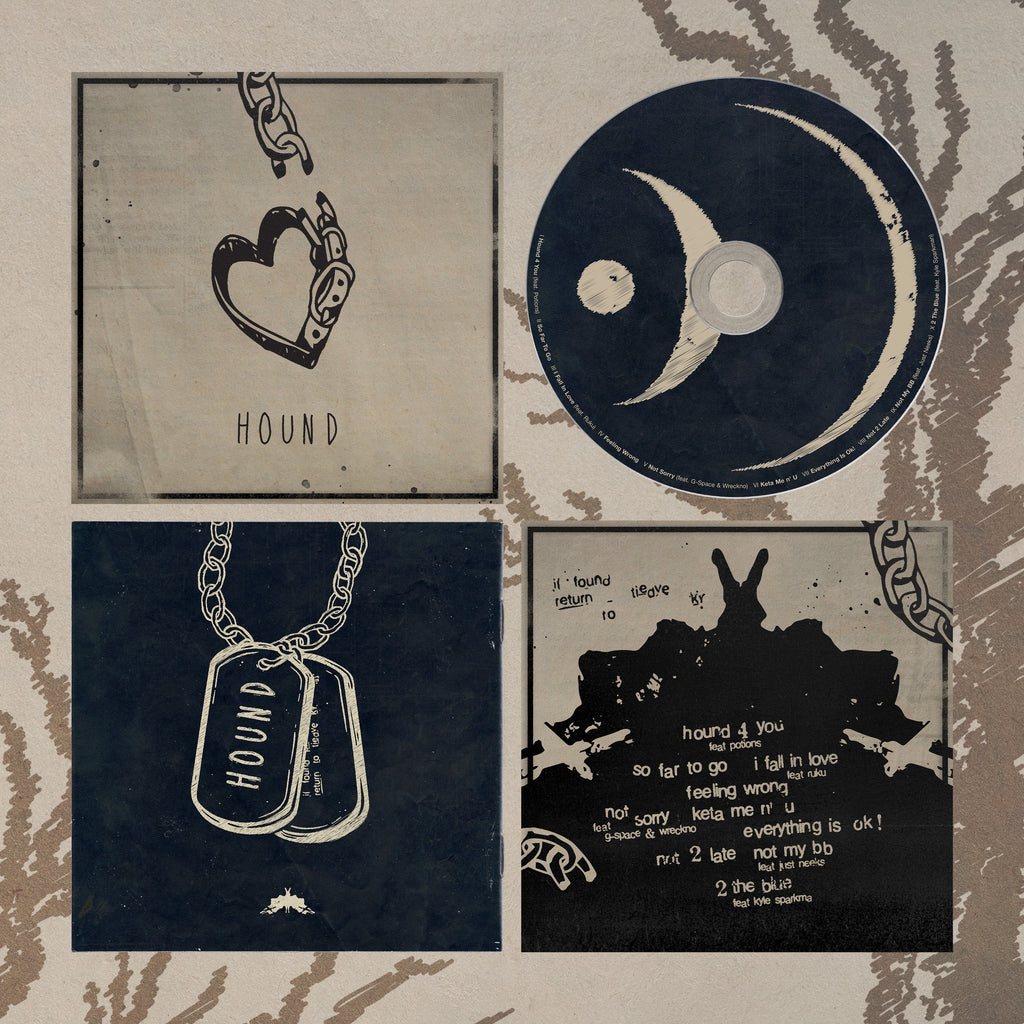 Hound, the album by tiedye ky on compact disc. Full color HQ art case, CD + insert.